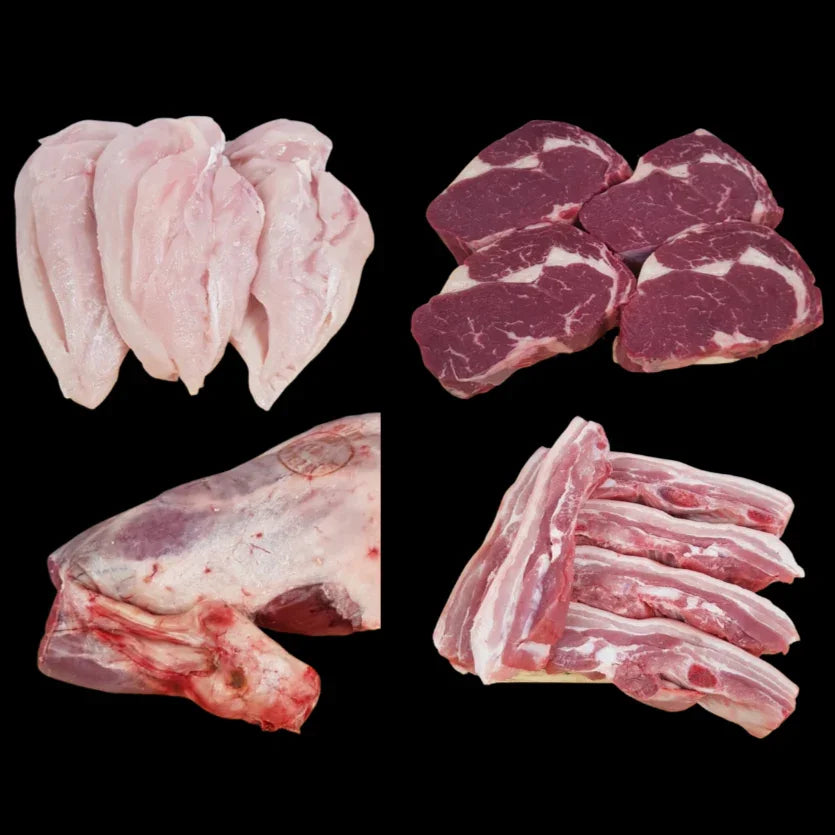 We've designed some packages to feed an average family of 4 for a week (based on 4-5 home-cooked meat meals per week). Based on feedback we have a variety of meat types in each package but if you want something different or more then simply select additional items from our online shop menu.